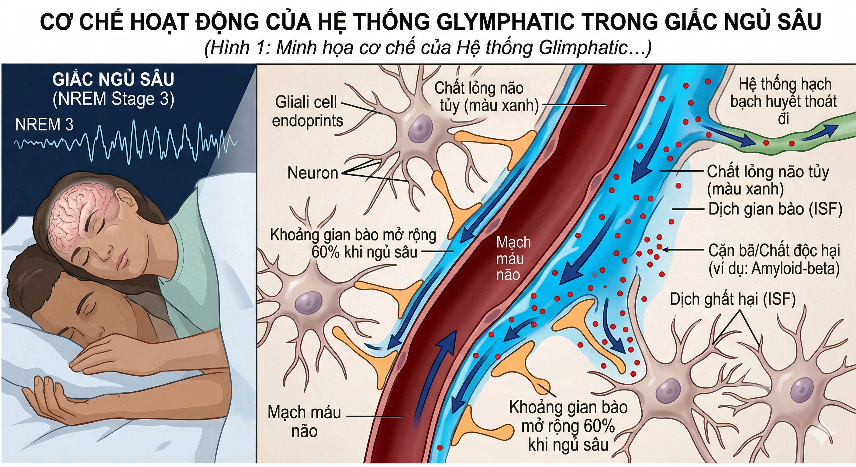 Hãy tưởng tượng não bộ của bạn là một thành phố bận rộn. Suốt cả ngày, các hoạt động trao đổi chất tạo ra vô số rác thải hóa học. Tuy nhiên, thành phố này có một quy định kỳ lạ: Hệ thống xử lý rác (hệ Glymphatic) chỉ hoạt động công suất tối đa khi bạn ngủ sâu.